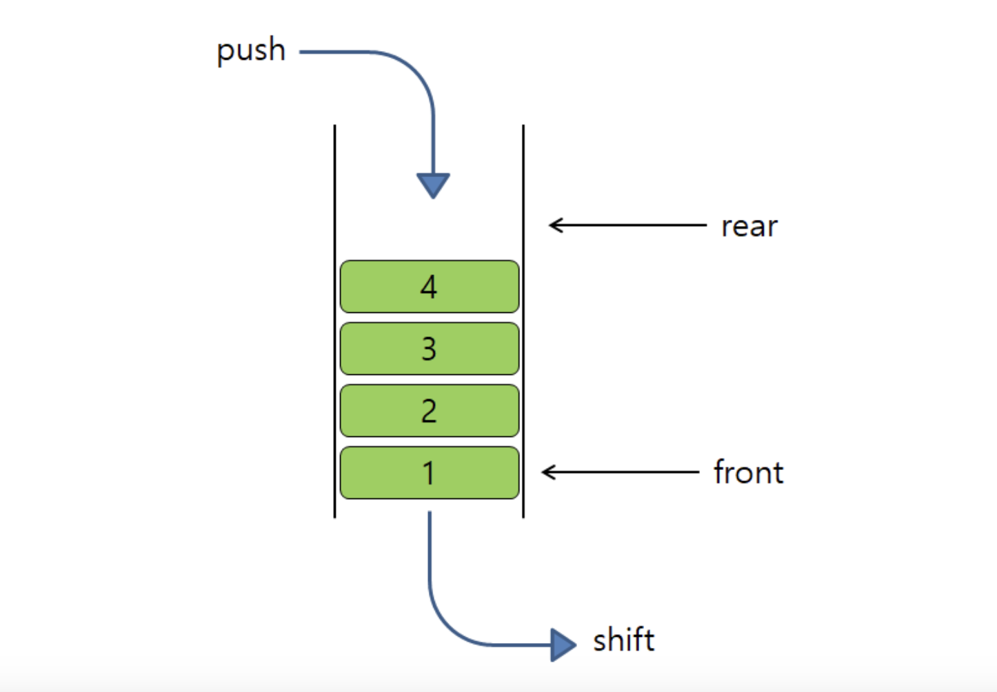 ➡️ 삽입과 삭제 연산이 한 쪽에서만 일어남